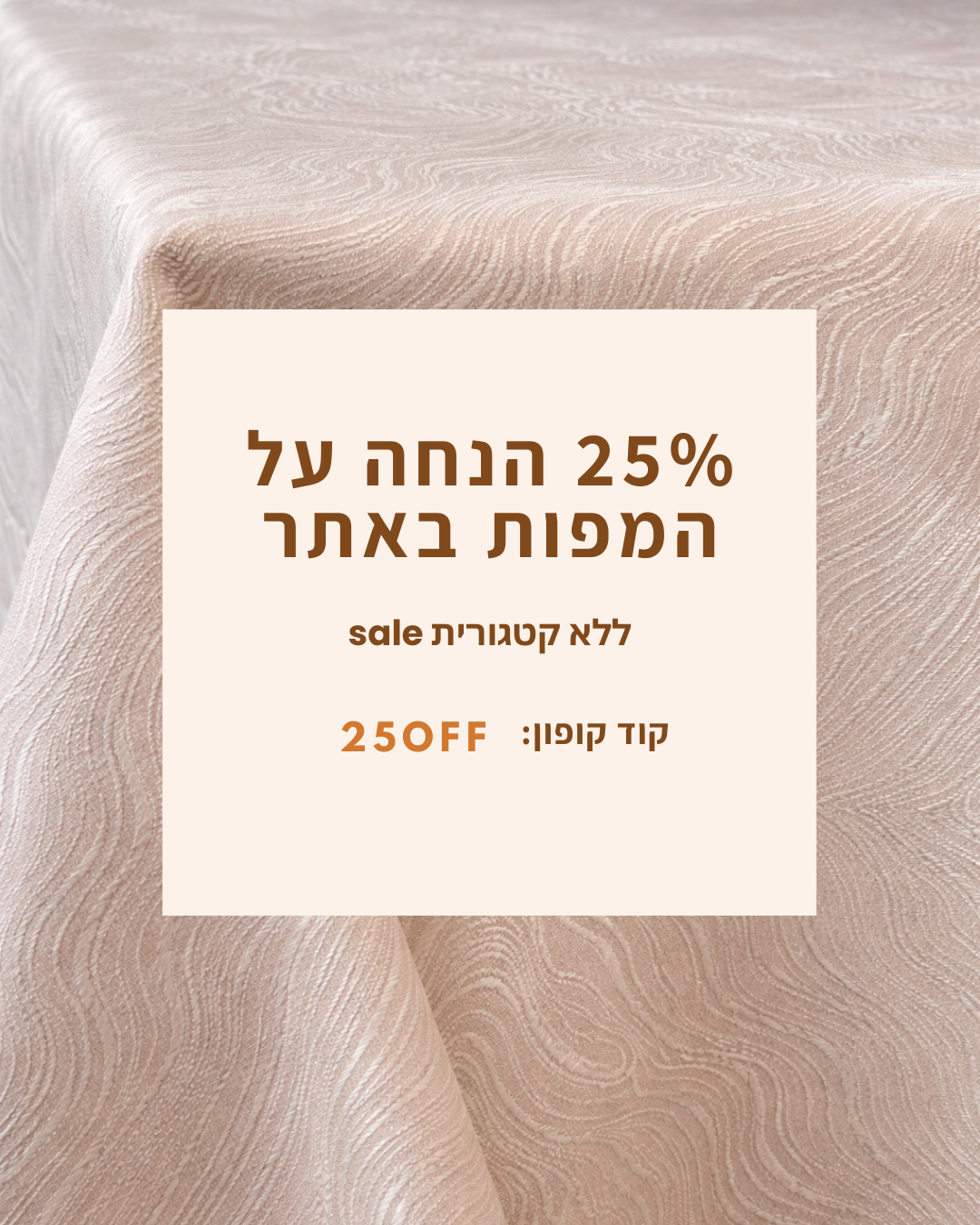 ברוכים הבאים לקטגורית מפות שולחן כאן תוכלו למצוא מגוון רחב של מפות שולחן בעיצובים שונים. כל מפה היא לא רק בד אלא בסיס לרגעים של חיבור, משפחתיות ואירוח, בחרו את הסגנון שמתאים לאוירה ותנו לשולחן להפוך ללב של הבית